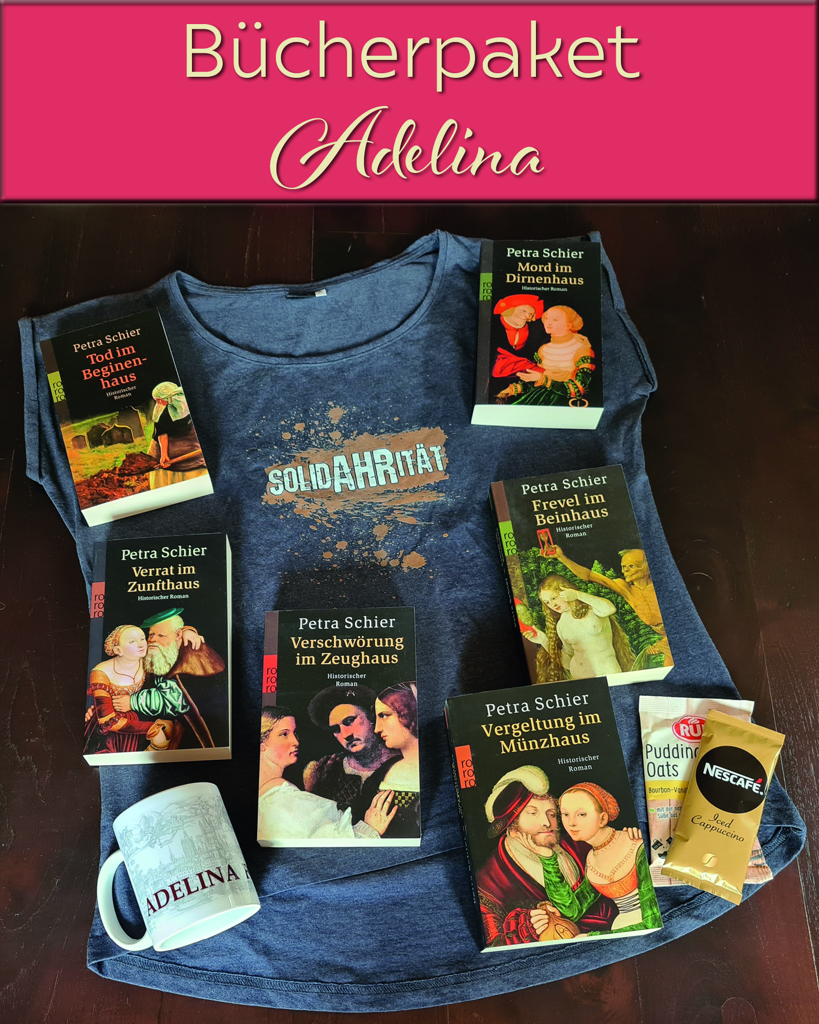 Das zweite Bücherpaket zur Versteigerung enthält Taschenbuchausgaben meiner historischen Adelina-Reihe, signiert selbstverständlich, Titel siehe weiter unten im Post oder auf dem Foto). Weiterhin enthalten sind ein T-Shirt “SolidAhrität”, ein Kaffeebecher “Adelina Forever” und ein paar kleine Überraschungs-Goodies. Startgebot: 25,- Euro Höchstgebot: 105,- Euro Ende der Versteigerung: 04.09.2021, 24 Uhr Gebote können an mich (Petra Schier) via PN/Messenger, E-Mail an buecherversteigerung@petra-schier.de oder als Kommentar, aber nur unter dem Originalpost auf Facebook, abgegeben werden....Weiterlesen→