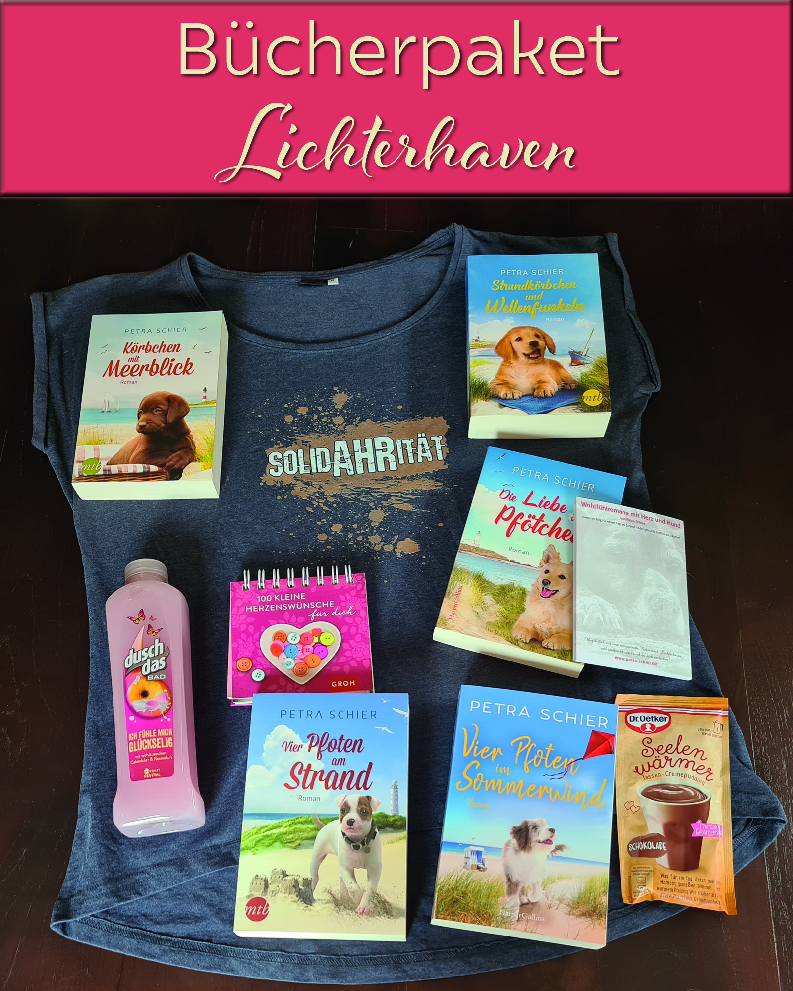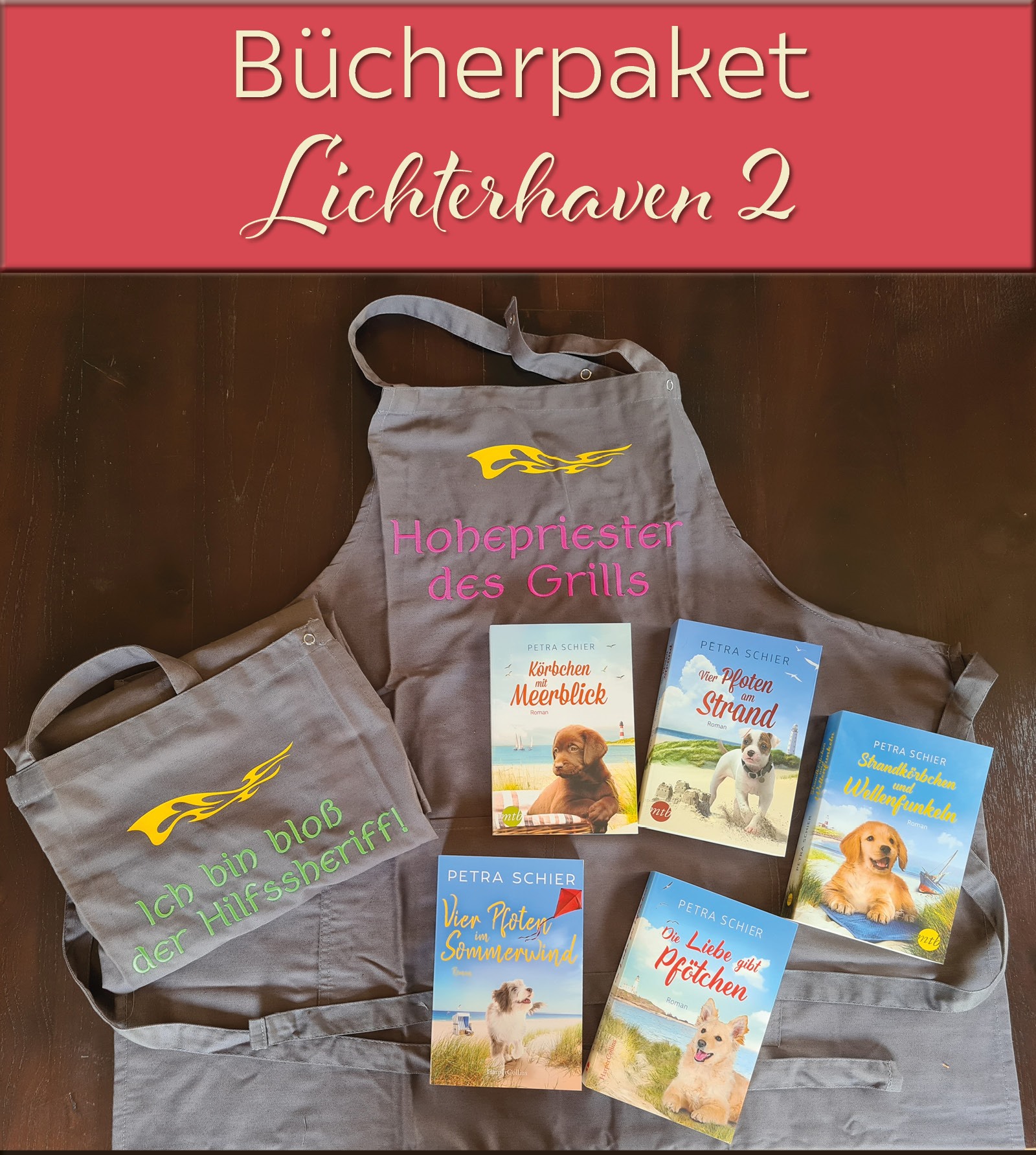 Das fünfte Bücherpaket zur Versteigerung enthält alle fünf bisher erschienenen Taschenbuchausgaben meiner Lichterhaven-Reihe, signiert selbstverständlich. Weiterhin enthalten sind zwei Koch- und Grillschürzen “Hohepriester des Grills” und “Ich bin nur der Hilfssheriff”, passend zu bzw. aus den Romanen “Körbchen mit Meerblick” und “Die Liebe gibt Pfötchen” sowie ein paar kleine Überraschungs-Goodies. Startgebot: 30,- Euro Aktuelles Höchstgebot: 100,- Euro Ende der Versteigerung: 09.09.2021, 24 Uhr Gebote können an mich (Petra Schier) via...Weiterlesen→