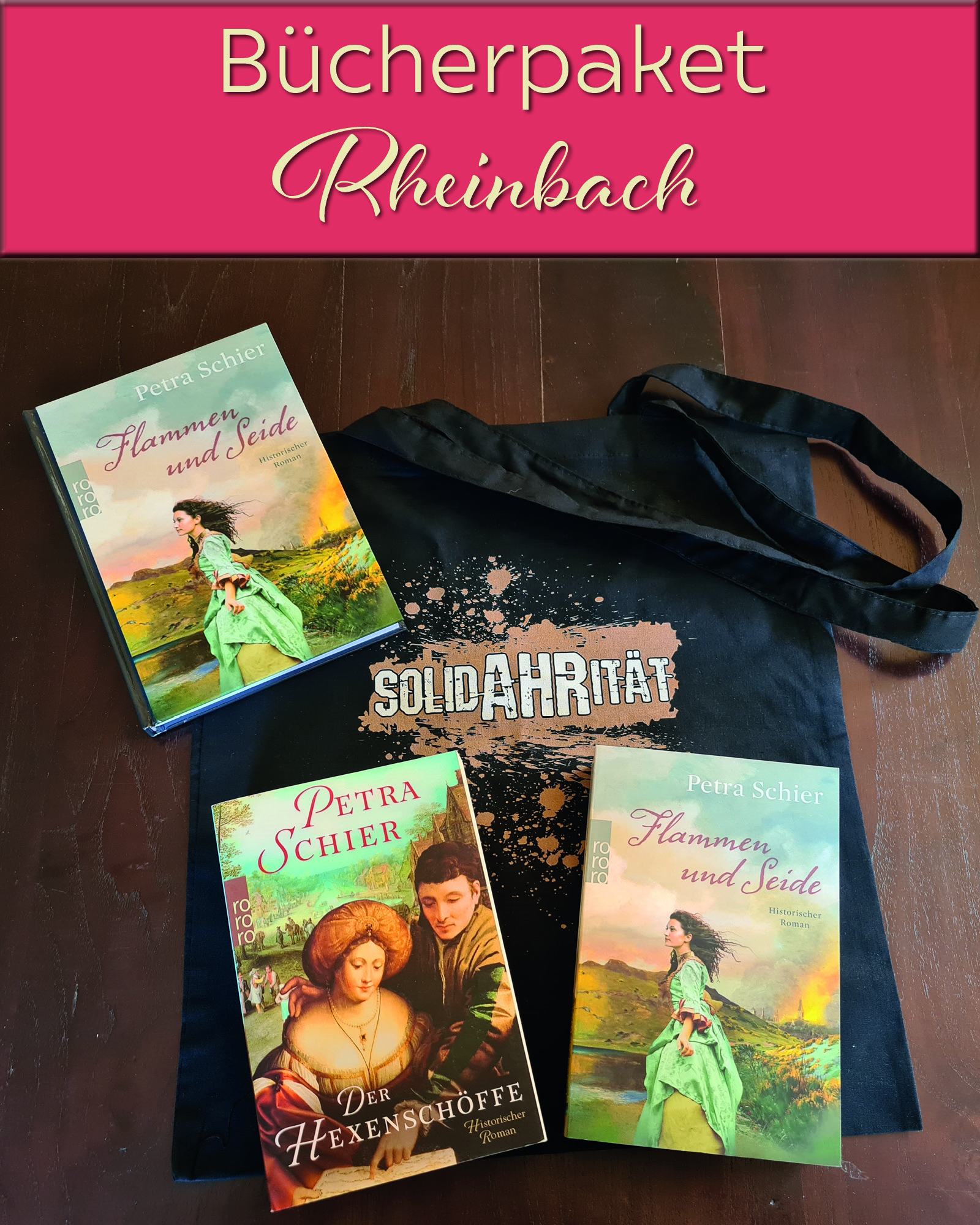 Das vierte Bücherpaket zur Versteigerung enthält die beiden Taschenbuchausgaben meiner historischen Rheinbach-Romane “Der Hexenschöffe” und “Flammen und Seide”, signiert selbstverständlich. Weiterhin enthalten sind ein Notizbuch “Flammen und Seide”, ein Stoffbeutel SolidAHRität und ein paar kleine Überraschungs-Goodies. Startgebot: 10,- Euro Aktuelles Höchstgebot: 30,- Euro Ende der Versteigerung: 06.09.2021, 24 Uhr Gebote können an mich (Petra Schier) via PN/Messenger, E-Mail an buecherversteigerung@petra-schier.de oder als Kommentar, aber nur unter dem Originalpost, abgegeben werden....Weiterlesen→