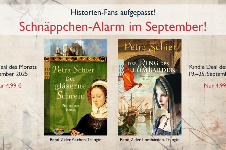 Ihr mögt Schnäppchen? Auch, wenn es um eBooks geht? Dann solltet ihr euch umgehend zu Amazon oder in jeden anderen Online-Buchshop aufmachen und sofort zuschlagen. Denn nur im September gibt es zwei meiner historischen Romane im Kindle-Deal, einmal für eine Woche und einmal den gesamten Monat. Wenn euch folgende beiden historischen Romane aus meiner Feder noch fehlen sollten, dann ist jetzt die beste Zeit , Geld zu sparen und eure…Weiterlesen→