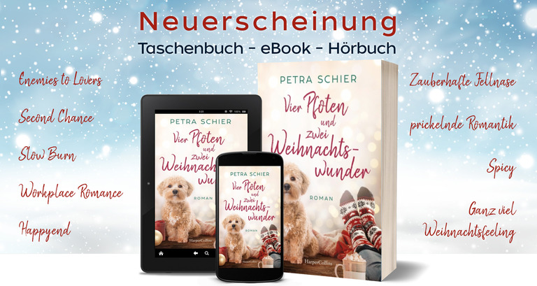 Immer noch ist es in meinem Blog viel zu ruhig. Immer, wenn ich mir vornehme, daran etwas zu ändern, kommt etwas anderes dazwischen. Aber einen Textschnipsel zu meinem neuen Weihnachtsroman Schneeflöckchen, Weißpfötchen möchte ich euch dennoch nicht vorenthalten. In meiner Facebook Gruppe Petras Welt: Treffpunkt für Fans der Autorin Petra Schier/Mila Roth hatte ich kürzlich eine Umfrage gestartet, aus welchem Buch die Mitglieder gerne den nächsten Textschnipsel lesen möchten, und...Weiterlesen